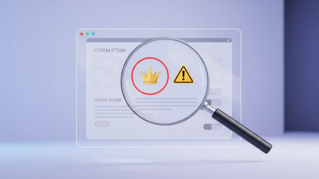 Canvaには何億点もの素晴らしい素材が用意されていますが、その多くは有料の「Canva Pro」ユーザー向けに提供されているものです。素材の右下に小さな「王冠マーク」がついているものが有料素材の印ですね。あなたが有料プランを契約している場合、デザイン作成時にはこれらの王冠マークの素材を自由に使うことができます。しかし、そのデザインをそのまま無料プランのユーザーに共有してしまうと、悲劇が起こります。