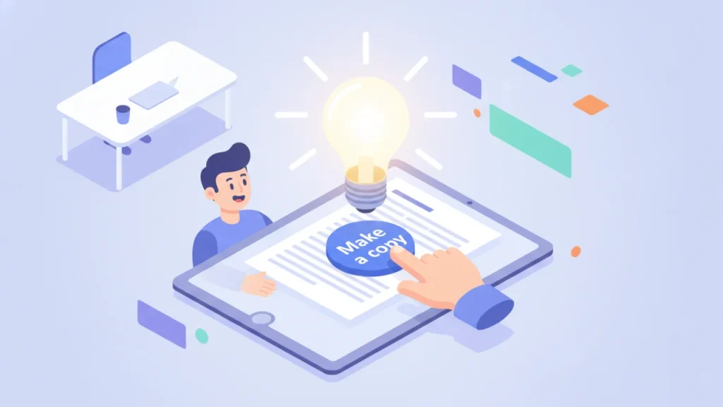 「閲覧のみのリンクを送ったら、相手は見るだけで編集できないのでは?」と疑問に思いますよね。その通りです。閲覧のみのリンクを開いただけでは、相手は写真の差し替えも文字の打ち替えもできません.そこで必要になるのが、リンクを受け取った相手自身に「コピーを作成」してもらうという、裏技の核となるアクションです。