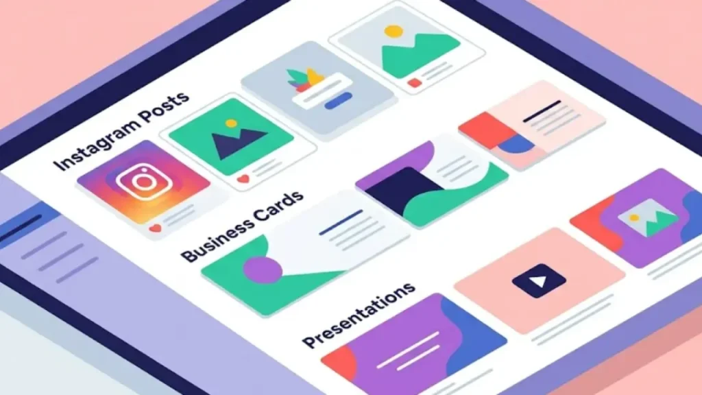 SNSや印刷物など、カテゴリー別に整理されたデザインフォーマットのイメージ