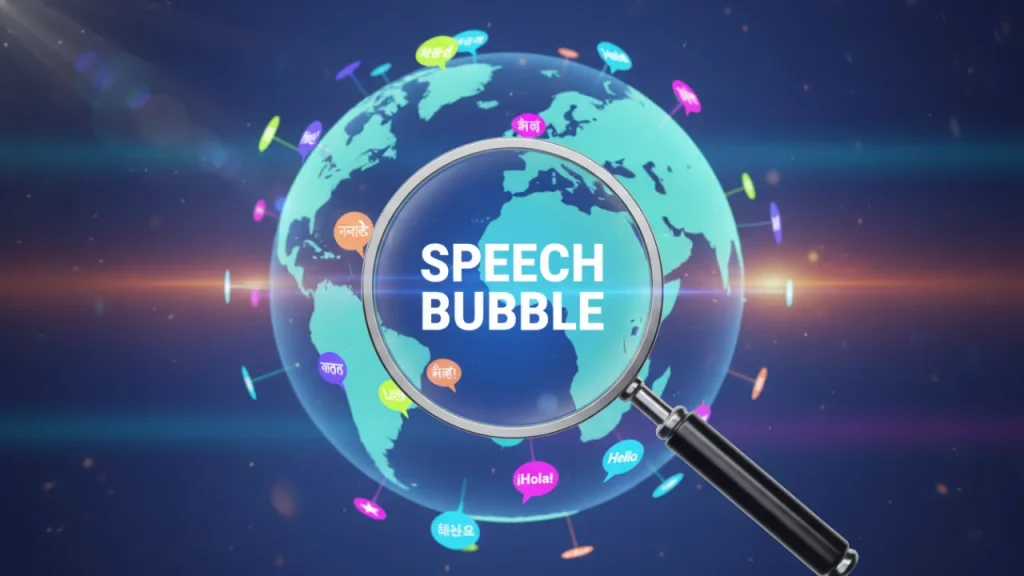 吹き出しを探す時に最もよく使う基本の英語キーワードは「speech bubble(スピーチ・バブル)」です。「speech」は話すこと、「bubble」は泡という意味ですが、英語圏ではこれが吹き出しを指す一般的な言葉として使われています。