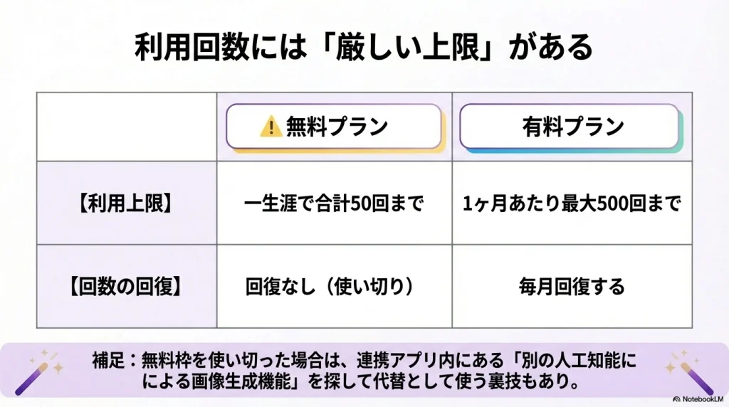 - 無料プランの回数制限や商用利用と著作権に関する注意点